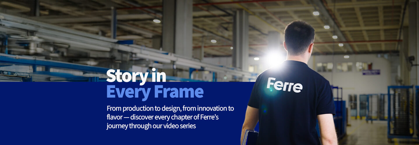 Discover Ferre’s story through videos ranging from our production processes to product showcases. Access all our content through our website and social media channels.
