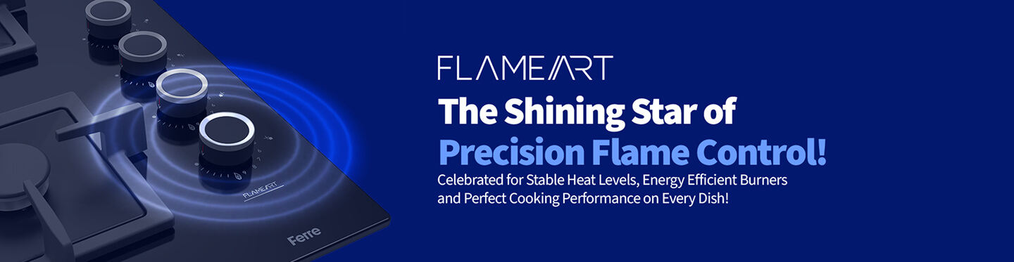 FlameArt offers nine levels of heat control to suit every dish. Its high-heat wok burner ensures superior performance for recipes that require intense heat. Featuring an elegant glass surface and durable cast-iron grills, it combines style and strength. With easy-to-clean surfaces, FlameArt brings practicality to your kitchen.